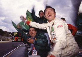 1993年4月 第2戦ハイランドでのひとこま。この年はカラーリングを黒に一新して参戦。予選6番手からスタートし、山内から瀬在にバトンタッチ。レース終盤は雨となったが、瀬在は5番手を走るレビンを追い上げ、最終ラップに逆転してクラス5位でフィニッシュ。 |